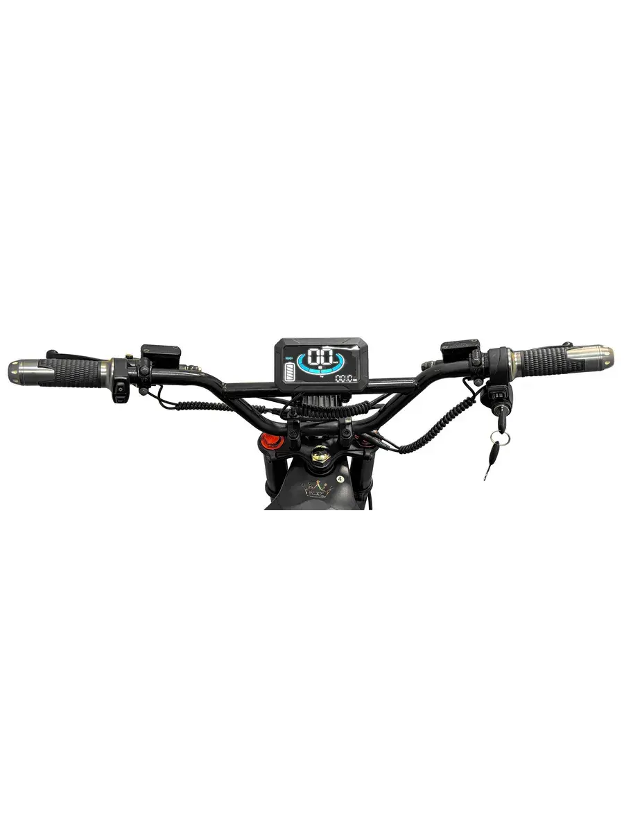 IKINGI S7 отлично подойдет для поездок по бездорожью, лесным тропам, пересеченной местности, а также заезду и спуску с гор. Модель является успешной. Специалисты достигли разгона питбайка до 75 км/ч, что является приличной скоростью на электро-питбайке в этом году. Данная модель имеет аккумулятор 30AH и 52V, что позволяет преодолевать в среднем 60 км при умеренной езде. Экран отображает информацию о скорости и имеет антибликовое покрытие. Электро-питбайк имеет грузоподъемность 140 кг.